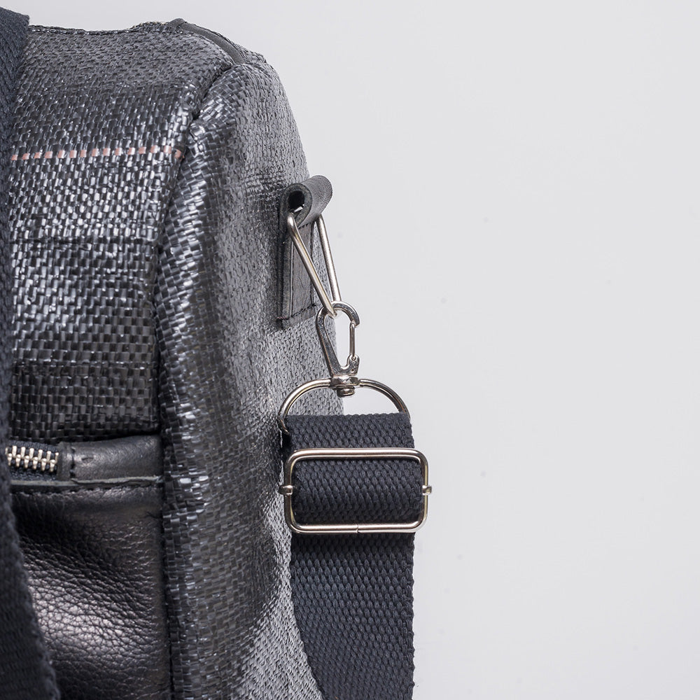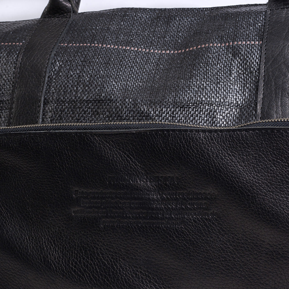 - Description: Maxi Bag crafted from recycled plastic big bags from Vaca Muerta, combined with discarded cowhide leather.