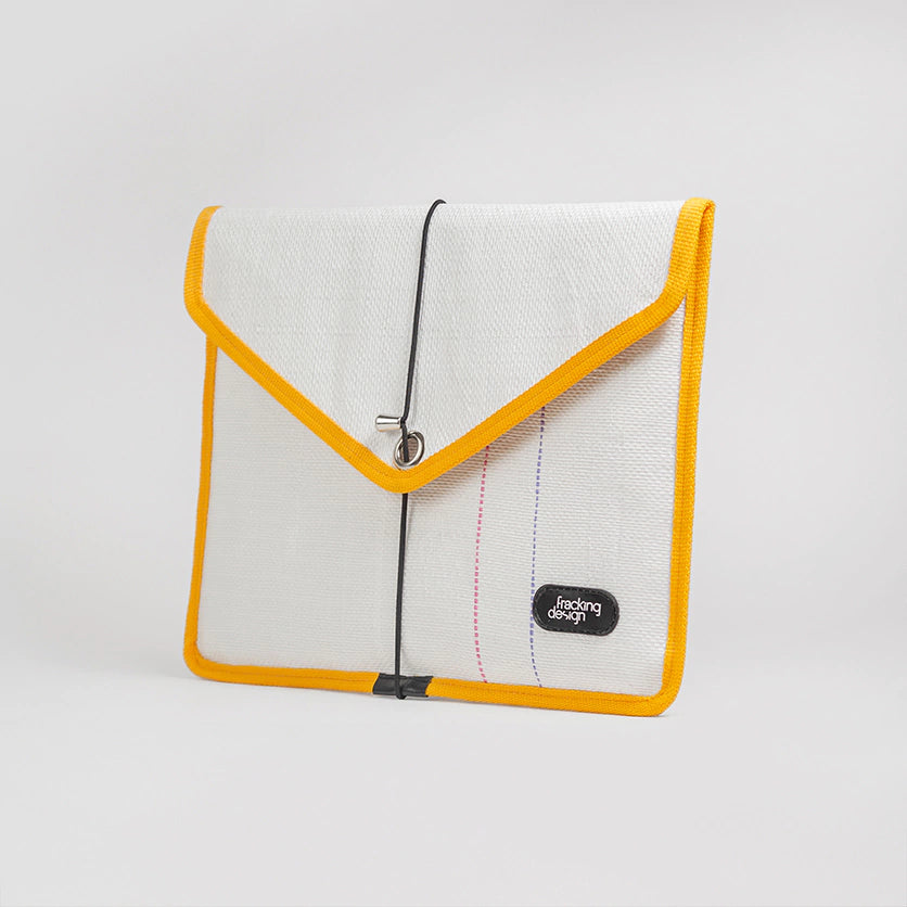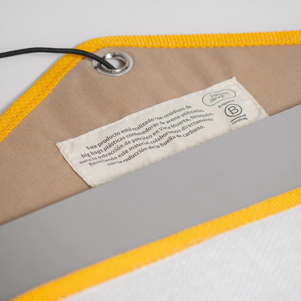 - Description: Laptop case crafted from recycled plastic big bags sourced from Vaca Muerta, Patagonia, Argentina.