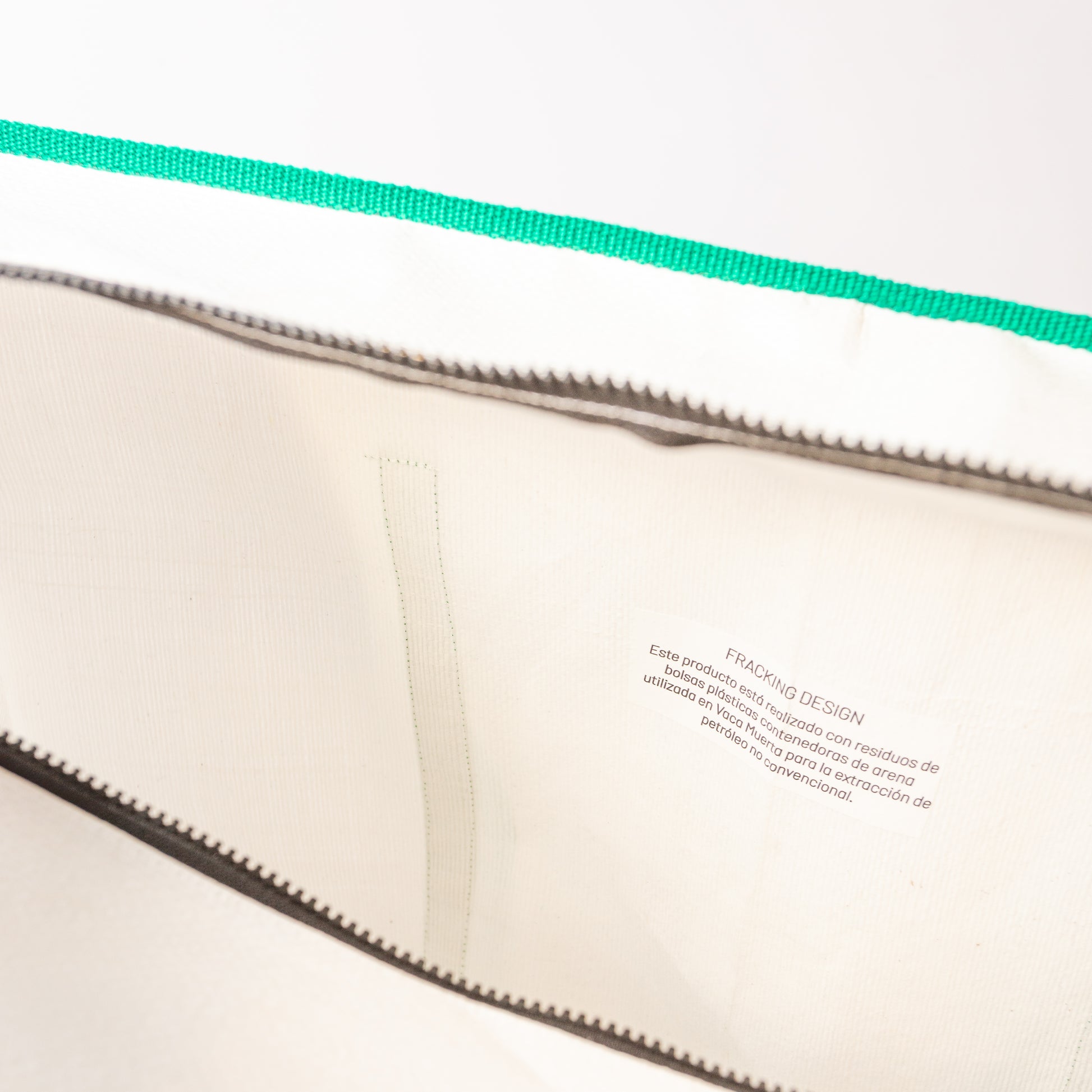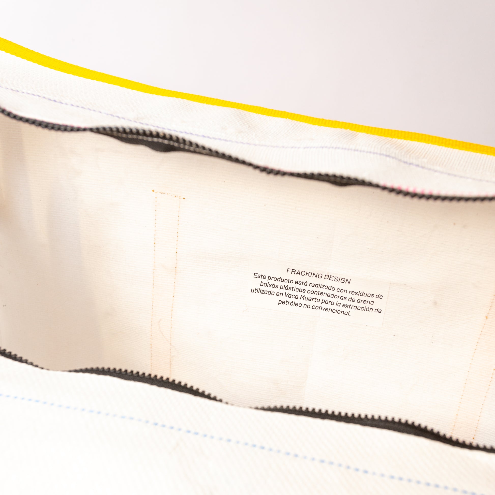 Description: This spacious and durable maxi bag is crafted from recycled plastic big bags from Vaca Muerta, Patagonia, Argentina. It’s perfect for those who need ample storage while making an eco-friendly fashion statement.