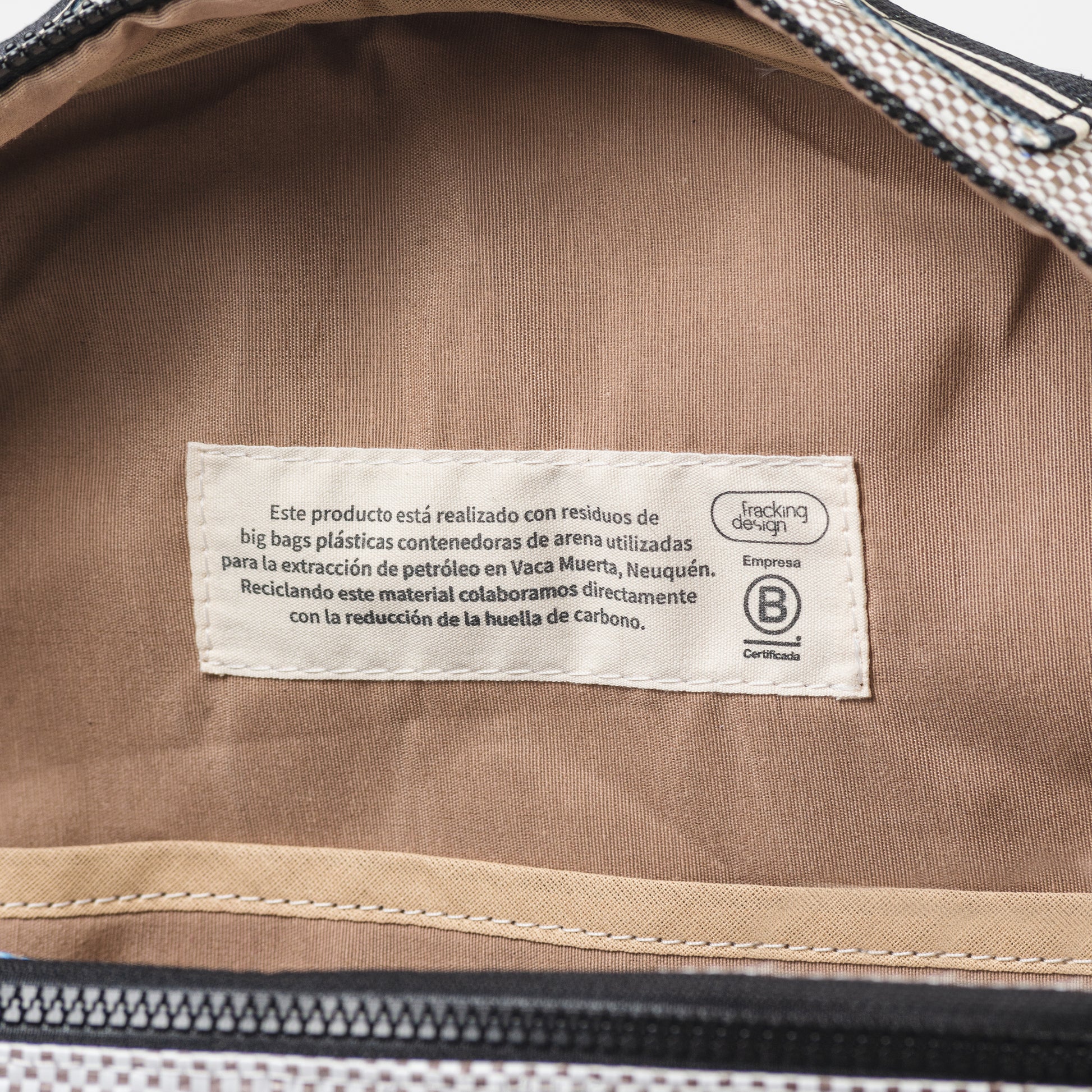 - Description: Backpack crafted from recycled plastic big bags sourced from Vaca Muerta, Patagonia, Argentina.