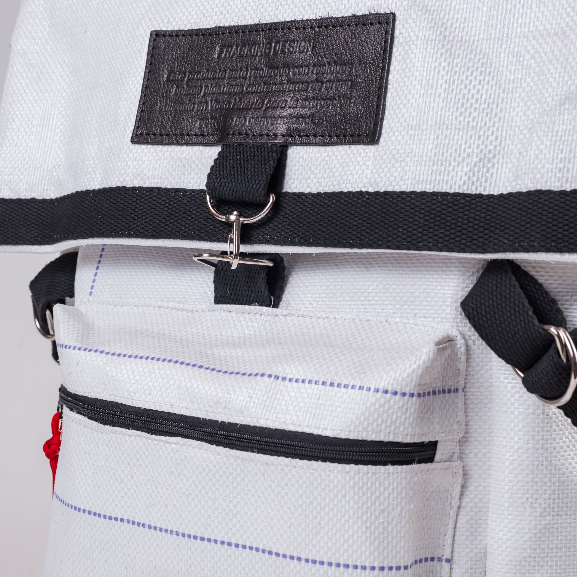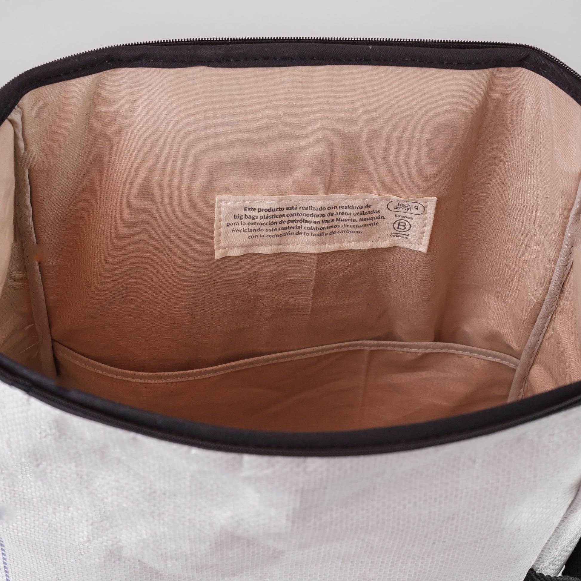 Materials: Crafted from Recycled Plastic Big Bags from Vaca Muerta, Patagonia Argentina, with details in Cowhide leather from discards.