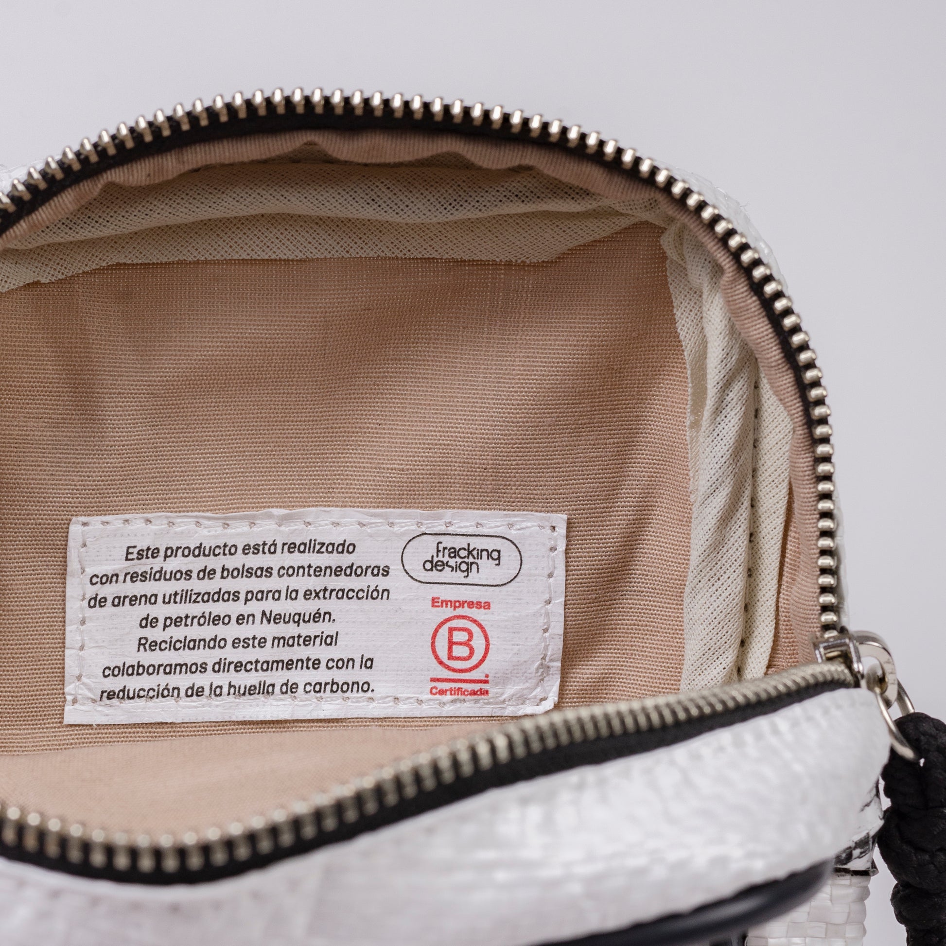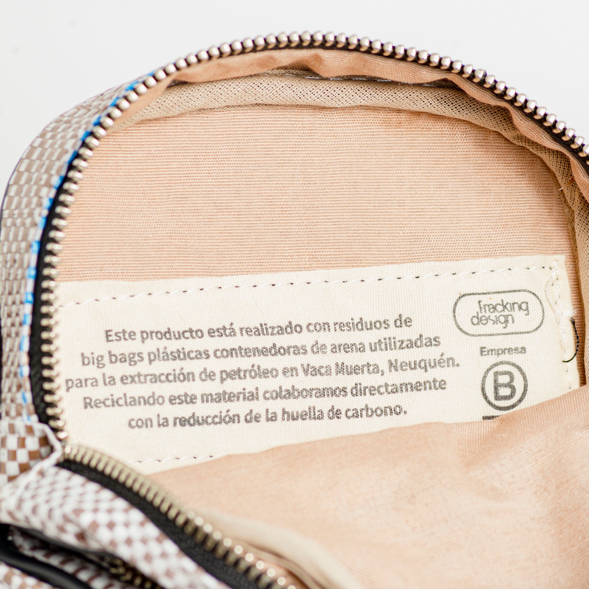 - Description: Shoulder bag crafted from recycled plastic big bags sourced from Vaca Muerta.