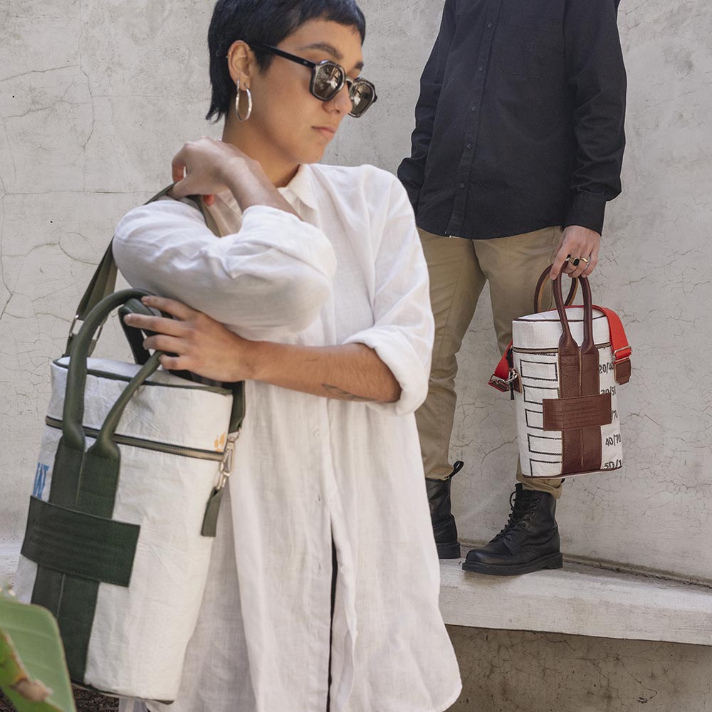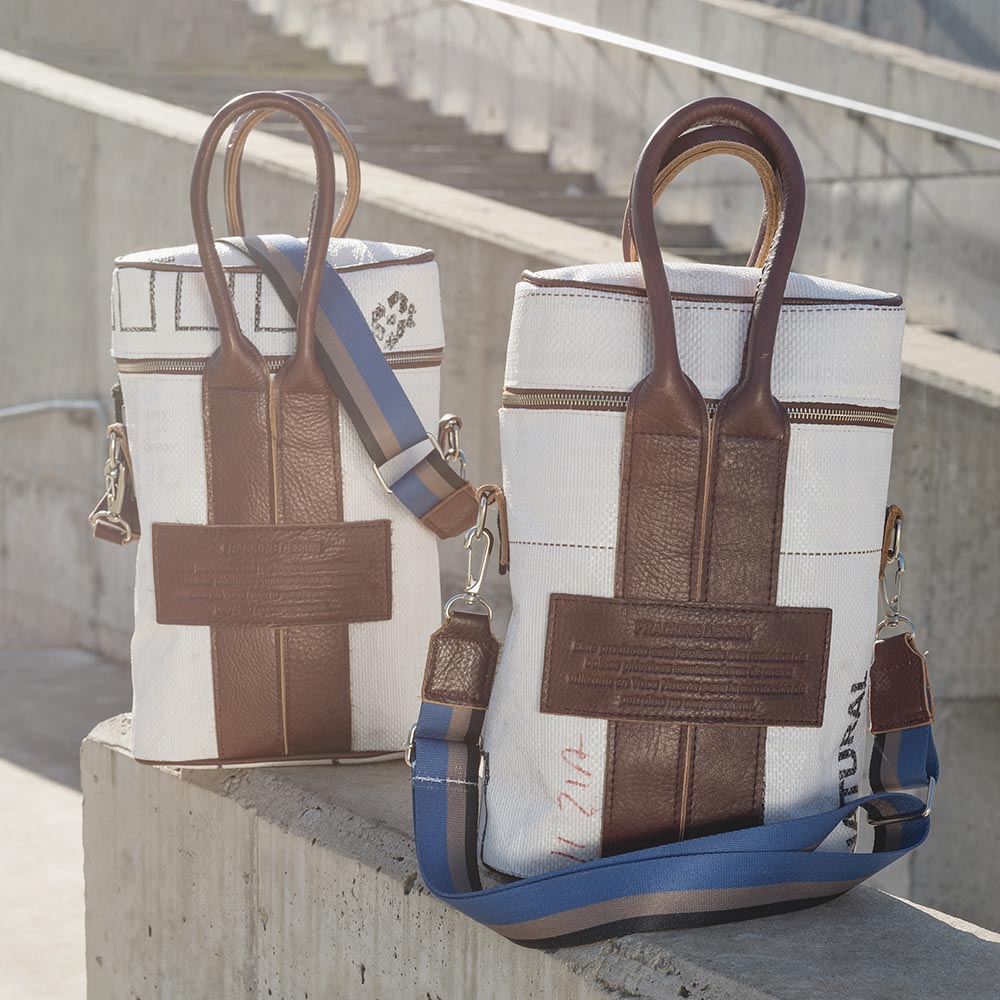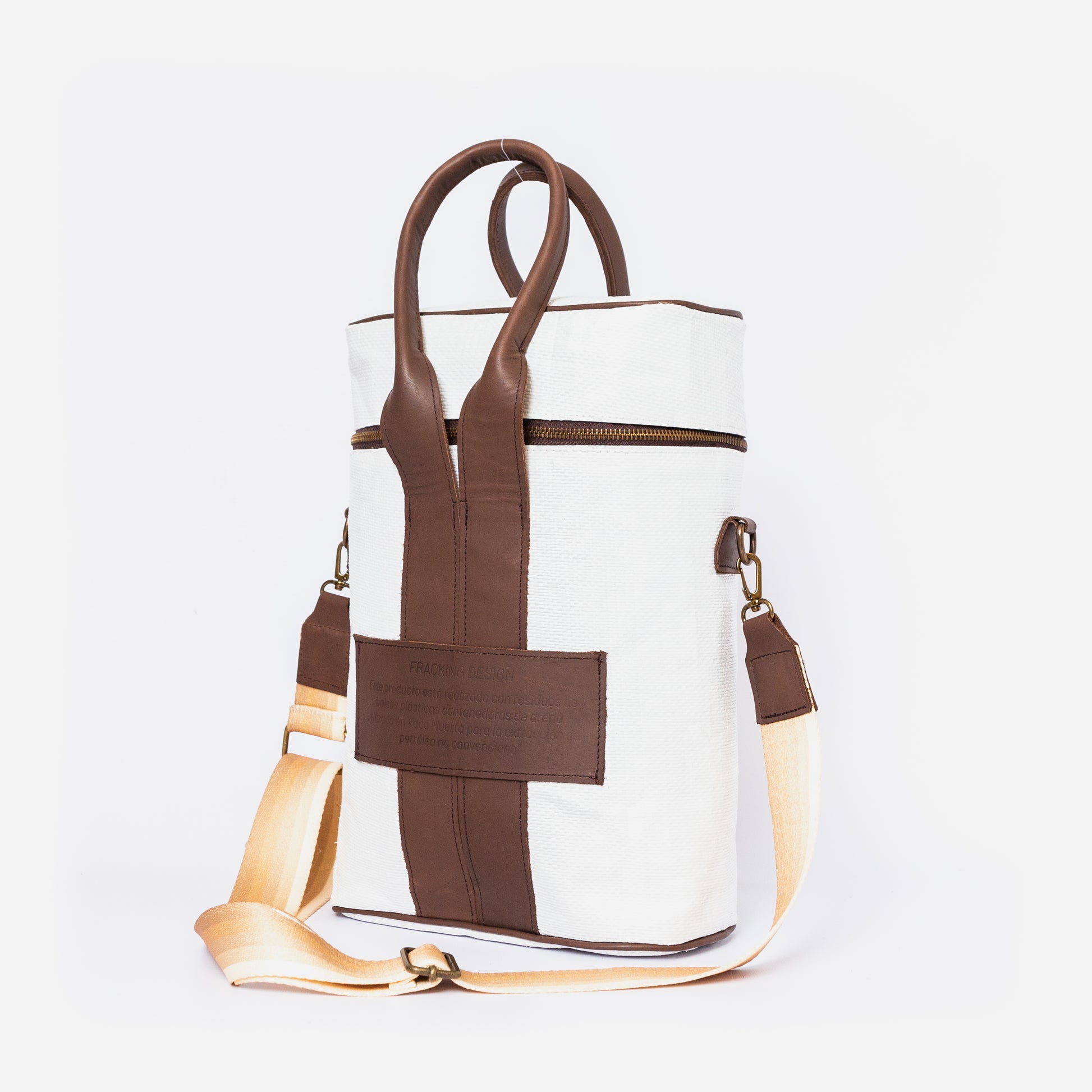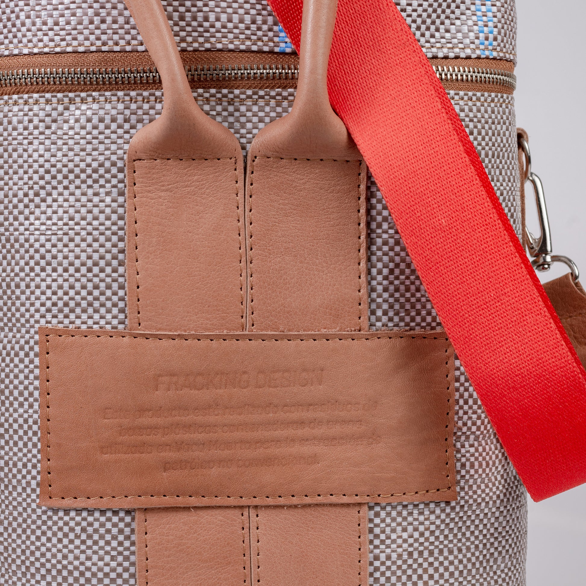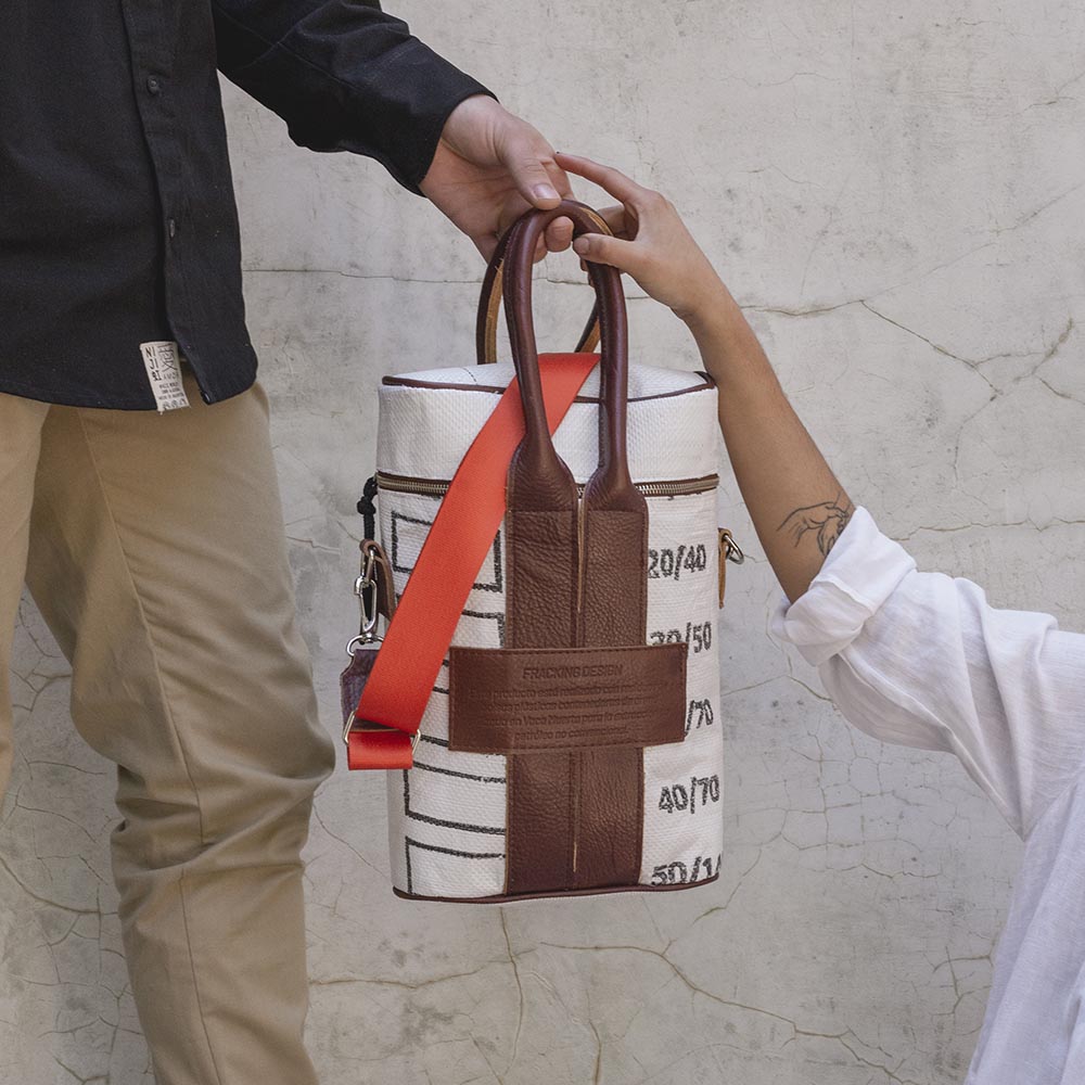 Materials: Made with Recycled Plastic Big Bags from Vaca Muerta, Patagonia Argentina, combined with Cowhide leather from discards.