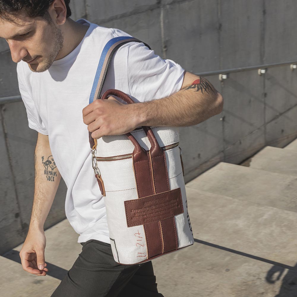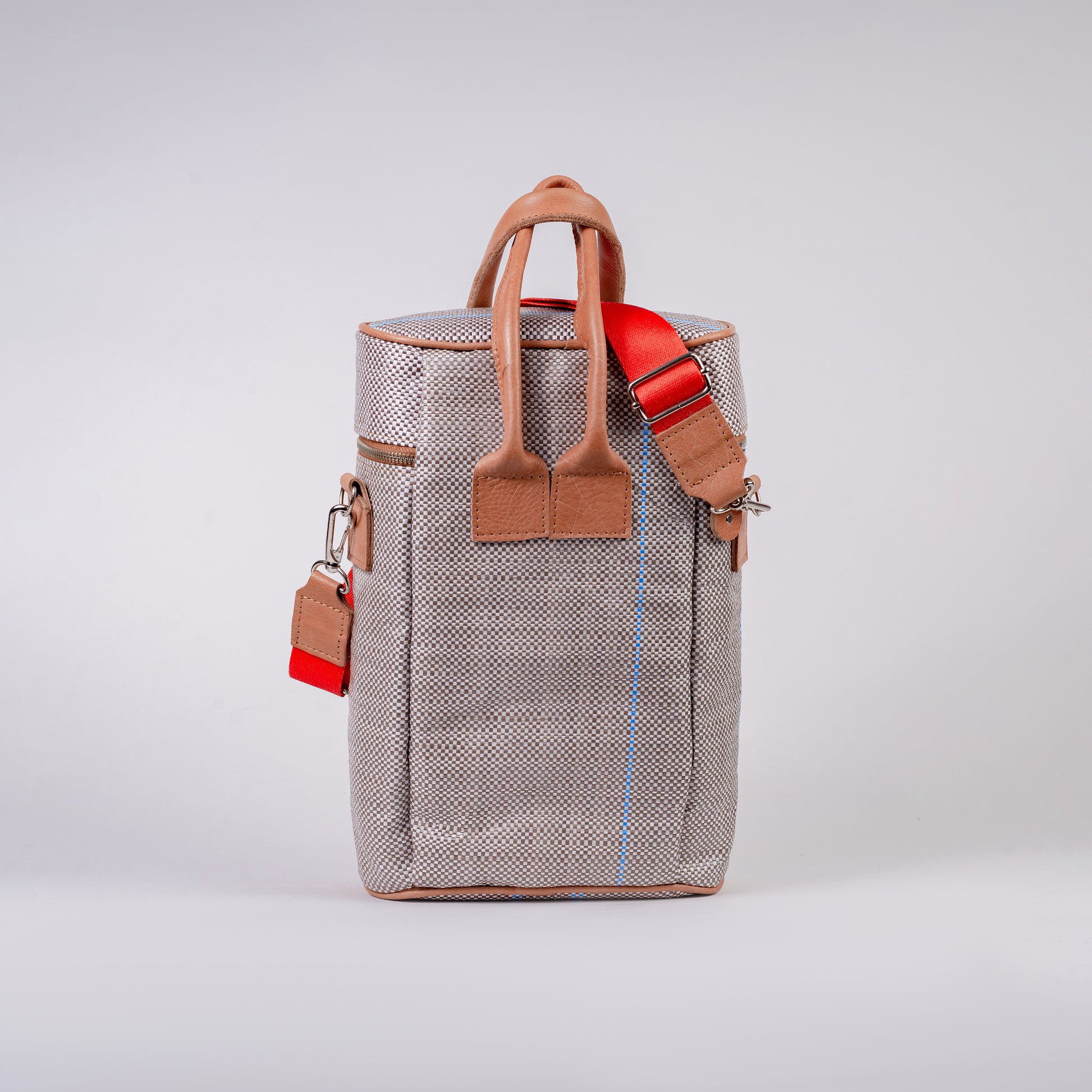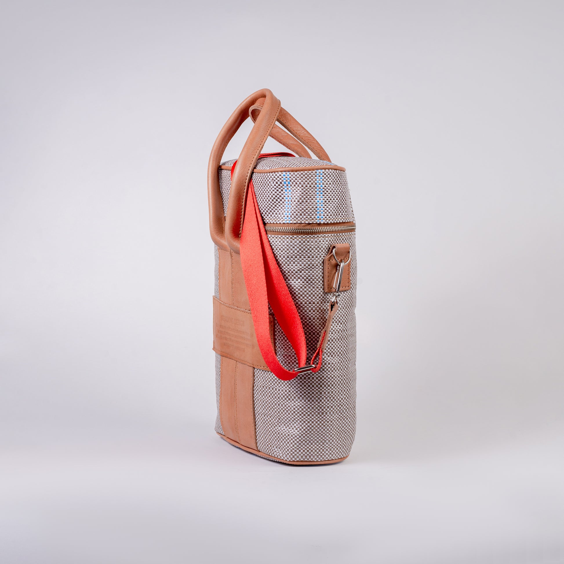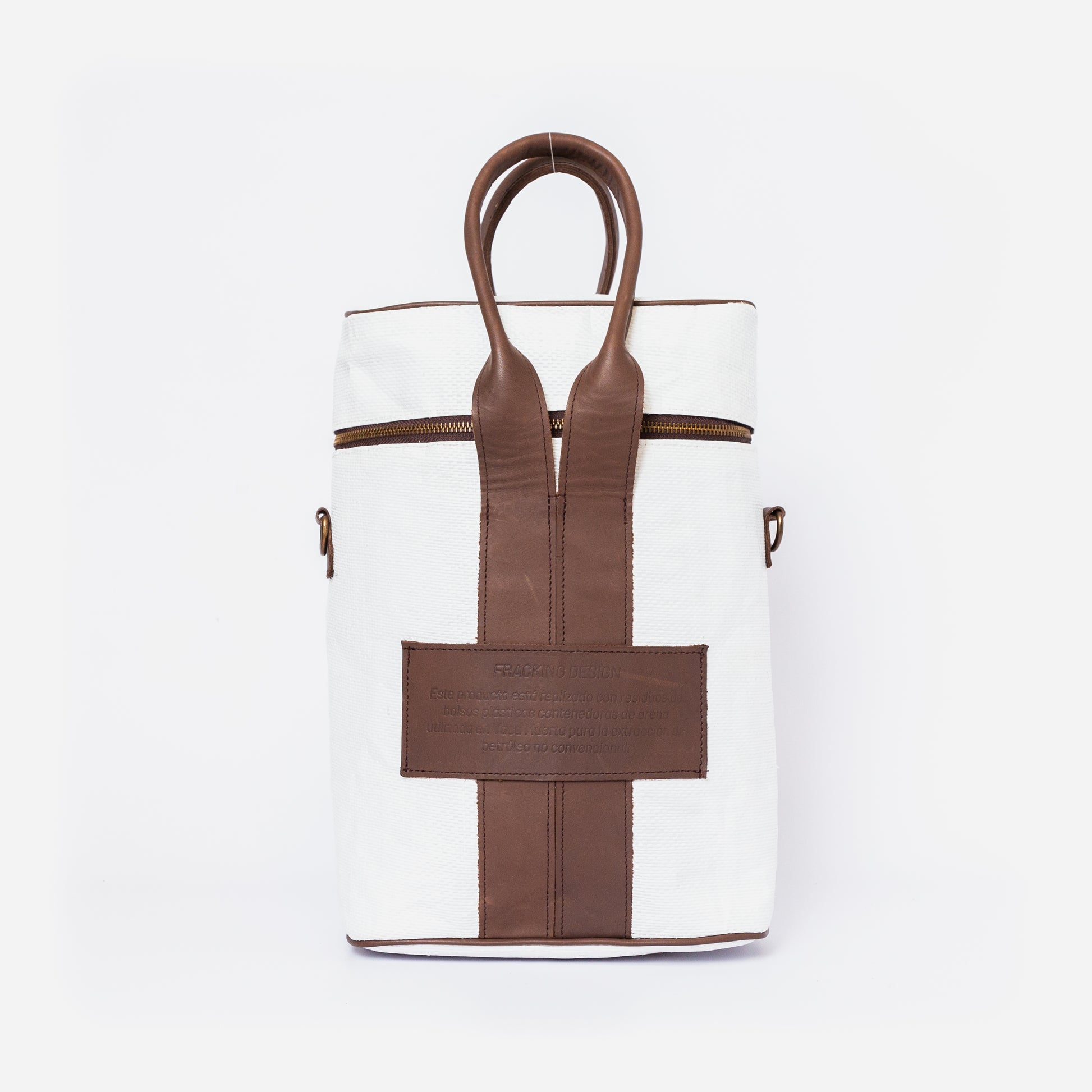 Materials: Made with Recycled Plastic Big Bags from Vaca Muerta, Patagonia Argentina, combined with Cowhide leather from discards.